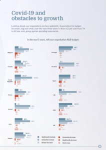 Having said this, most questions are not Covid-19 specific so can be analysed independently of its influence. For example, technology is a major theme throughout. The growing complexity of the R&D role makes technology increasingly crucial for projects to be fruitful. Fortunately, there are new, advanced tools which bring these capabilities, but because lots of companies do not have these in-house, many are looking to private resources to achieve their goals by outsourcing or creating hybrid models for fostering innovation.