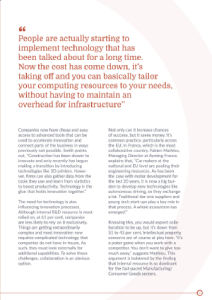 People are actually starting to implement technology that has been talked about for a long time. Now the cost has come down, it’s taking off and you can basically tailor your computing resources to your needs, without having to maintain an overhead for infrastructure.Mark Smith